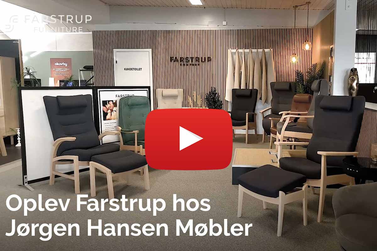 Hos Jørgen Hansen Møbler finder du et stort udvalg af Farstrup-stole. Det er dansk design og håndværk, som kombinerer komfort, kvalitet og funktionalitet på bedste vis. Vi hjælper dig med at finde den helt rigtige stol, uanset om du søger en otiumstol, hvilestol eller lænestol. Vores mission er at finde en stol, der passer godt til dig og dit hjem.